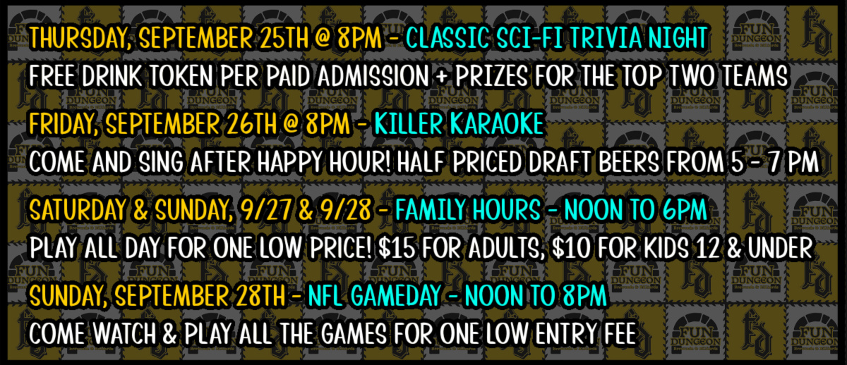 This Week at Fun Dungeon – 9/25 thru 9/28