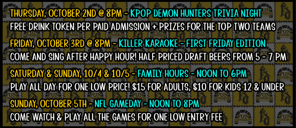 This Week at Fun Dungeon – 10/2 thru 10/5