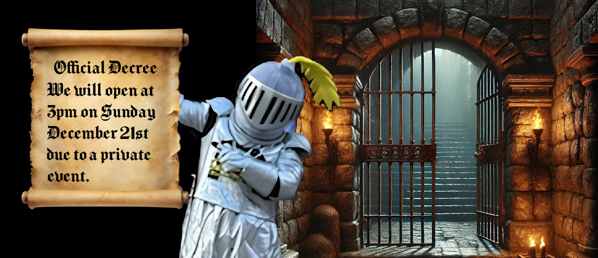 Please note, the dungeon will be opening at 3pm on Sunday, December 21st due to a private event at noon.